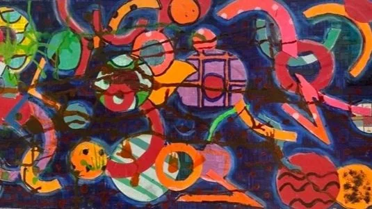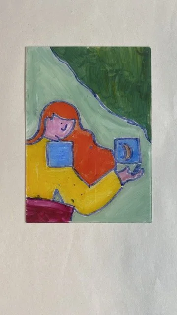 Lately, she’s developed a unique way of working with masking tape - creating 3D reliefs of her sketchbook drawings, which are then painted into and overlapped with other imagery.