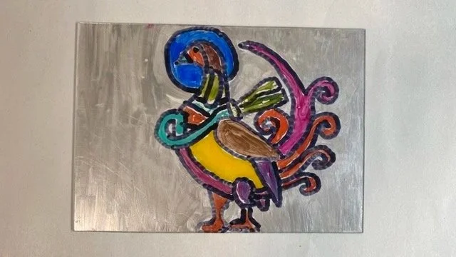 Bobbi’s work explores animals, nature, and abstract forms through sculpture, painting, printmaking and drawing. Alongside figurative work, she has a distinct abstract language - tribal masks, glyphs, symbols, symmetrical designs - that emerges in sketchbooks kept as a form of therapy and emotional release: “it makes me relaxed, it stops me from having panic attacks and helps me get everything out of my system when I’m upset.”