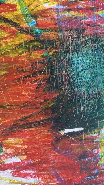 Loane creates colourful, expressive works that reflect her spirit, joy, and resilience as a blind artist. Since joining Artbox in 2020, she has explored a wide range of materials - layering rhythmic marks in pastel or paint, often using Blu Tack to guide her composition by touch. Her work sometimes incorporates scent, using incense and spices, while recent experiments with drypoint etching allow her to feel where her marks land. Loane is especially energised by the physical act of making, particularly in processes that involve big movements, like screen-printing or winding the press wheel. She’s a much-loved part of the Artbox community, warmly referring to everyone as “my friend”, and her guide dog, Otis, is an adored and cuddly studio assistant. Loane also performs and records music under the name Bonnyphile.